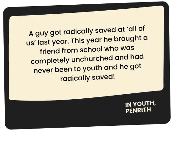 For many years, Youth Alive had limited influence in Port Macquarie. This year, we connected with a number of pastors and youth pastors, introduced the vision of Youth Alive, and began building relationships. Together, we hosted a regional rally involving 12 churches across 10 denominations, with 180 in attendance and 60 decisions for Christ. We also held a Leaders EQUIP Tour event, which served as a strong connection point for leaders across the region.